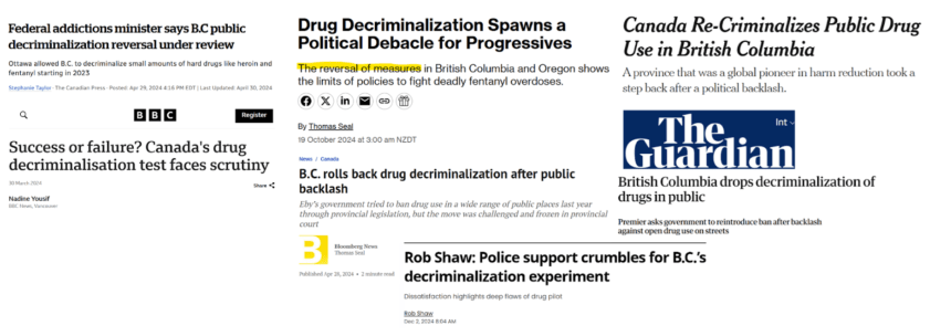 Ali, F., et al (2024). Unpacking the Effects of Decriminalization: Understanding Drug Use Experiences and Risks among Individuals Who Use Drugs in British Columbia. Harm Reduction Journal, 21(1), 190.