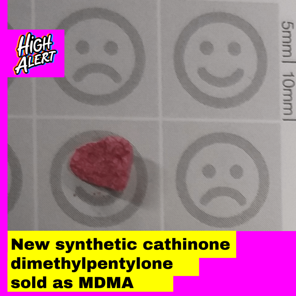 We found it in a pink Playboy pill, but it is also found as a white crystal, so definitely get both forms of your gear tested. Remember, cathinones come in all shapes and colours, so you can’t tell whether something is a cathinone or not just by looking.