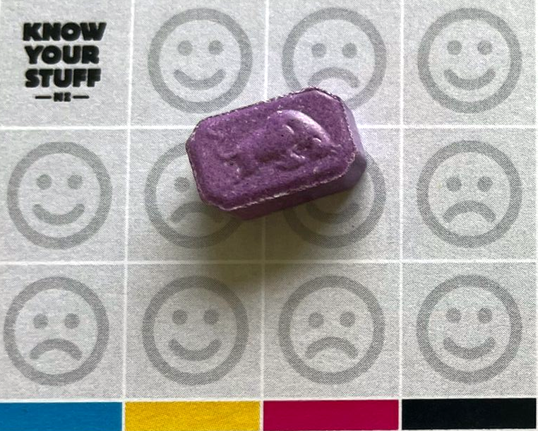 Purple Papa de Papel, sold as MDMA Weight:485mg Contains ~203mg eutylone, sold as MDMA Found in the North Island, May 2023 | ![]() |