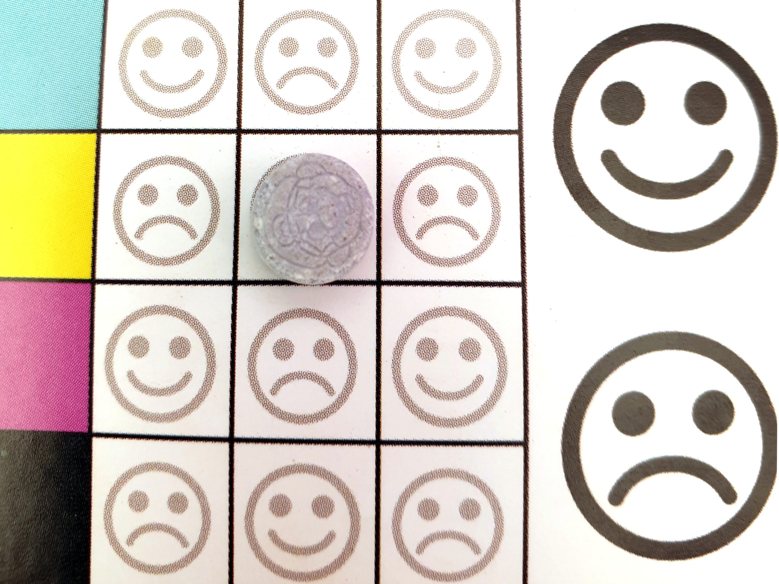 Please note that the amount of active substance present is an estimate only as our technology cannot directly measure dosage or purity. Our spectrometer provides a rough percentage of psychoactive content in a sample. We use this combined with the weight of the pill to reach these estimates. The estimated dosage should be treated as an indication only and we recommend caution. When in doubt, always take less and redose after 90 minutes if necessary.