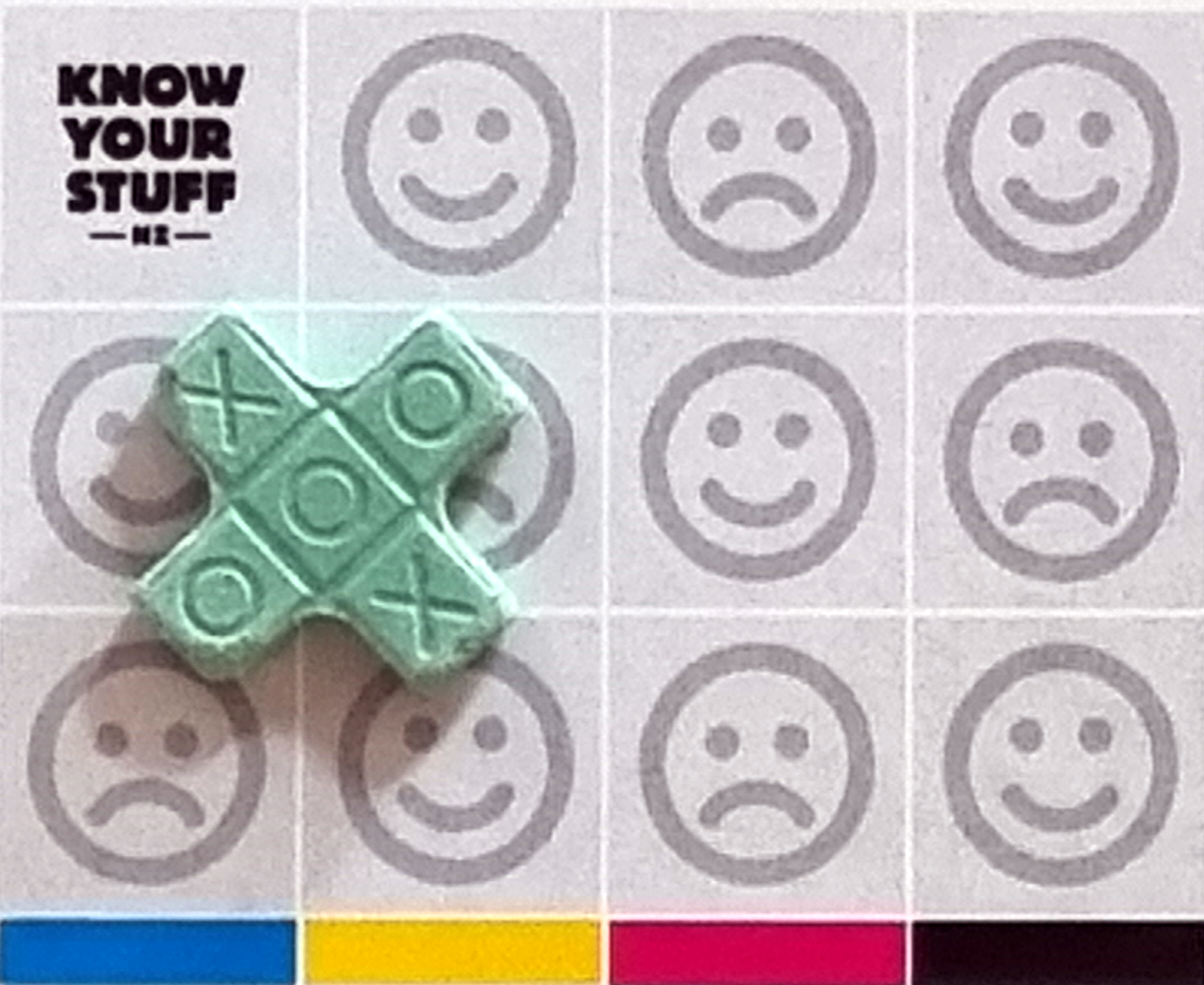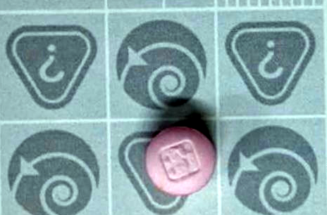 Contains approximately 155mg N-Isopropyl butylone, a novel cathinone, as well as ketamine and paracetamol. These pills will not react positive for the presence of MDMA using a standard at-home reagent test.