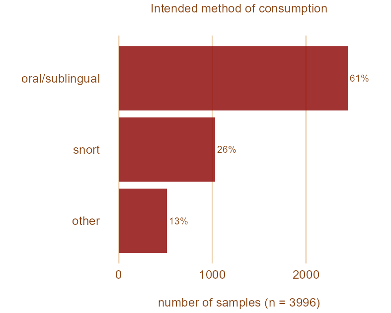 - 61% of clients said that they intended to take their substance orally or sublingually (under the tongue)