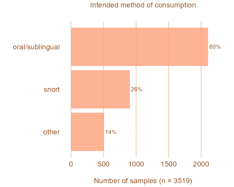 - 60% of clients said that they intended to take their substance orally or sublingually (under the tongue)