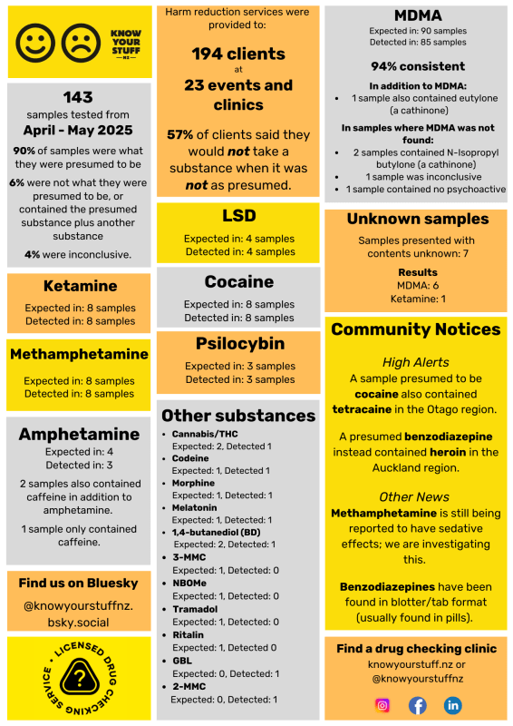 KnowYourStuffNZ provides drug related harm reduction services at events around New Zealand, including drug checking. The result of every test…
