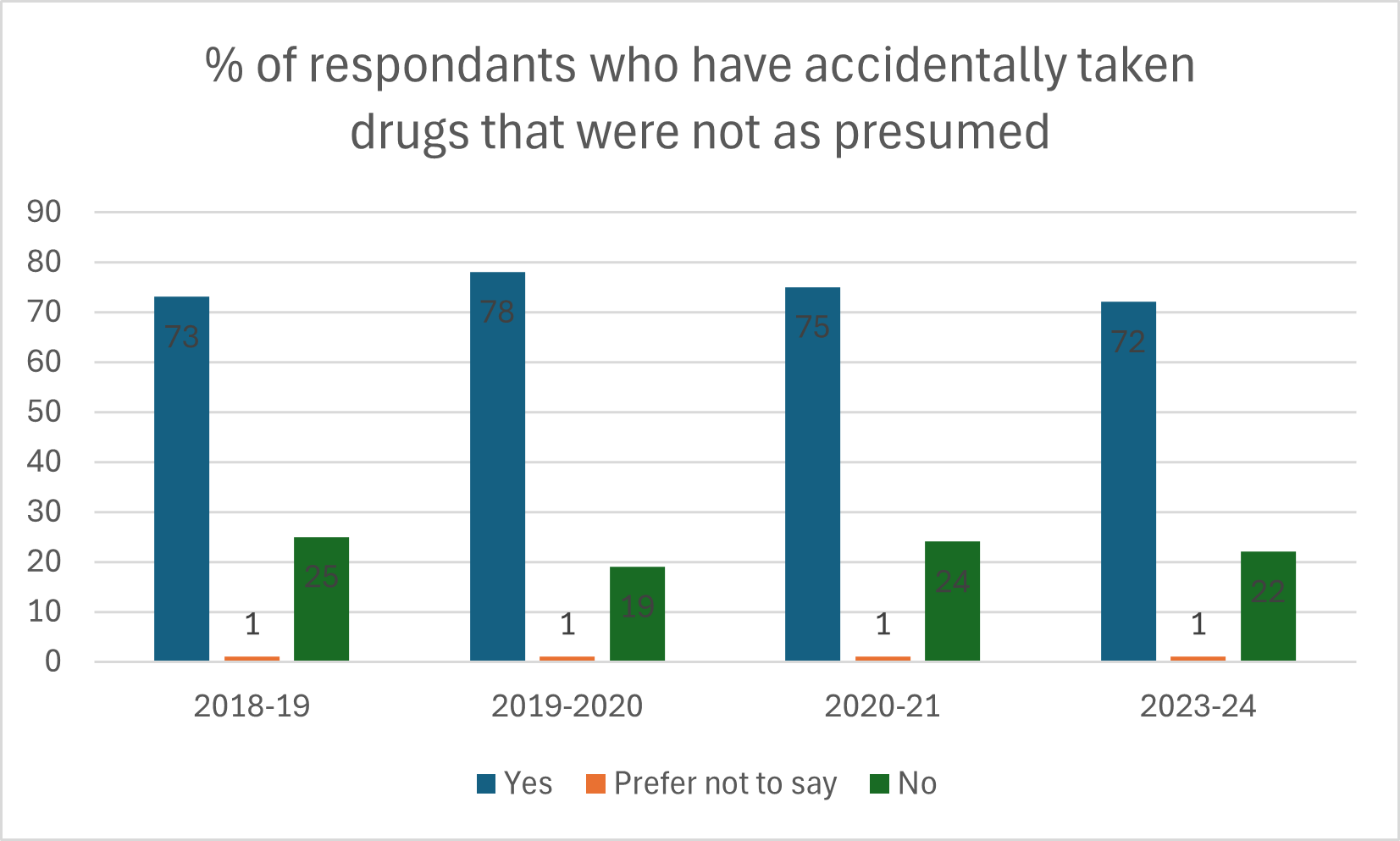 These reports are from our voluntary surveys which ask our clients questions about their drug-taking behaviour and how it is influenced by drug checking.