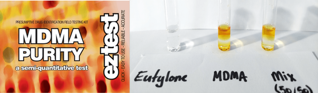 These are photos of the reagent tests we did during the eutylone flood of 2021. You can clearly see that the results for MDMA are identical to MDMA mixed with a cathinone.